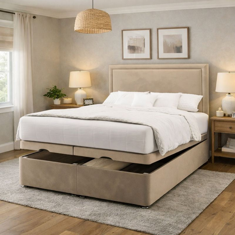 Introducing the Bond Plain Border Ottoman Bed Base – the perfect combination of functionality and style. Our bed base is the ideal solution for those who are looking for a durable and premium quality product that offers outstanding storage space while adding a touch of elegance and luxury to their room.