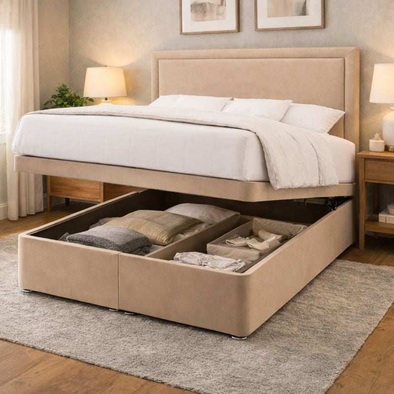 But our Ottoman Bed Base is not just about style and convenience. It's also about practicality and functionality. The outstanding storage space beneath the bed base is perfect for storing extra bedding, clothes, shoes, and other items, making it an excellent option for those who want to maximize the space in their room.