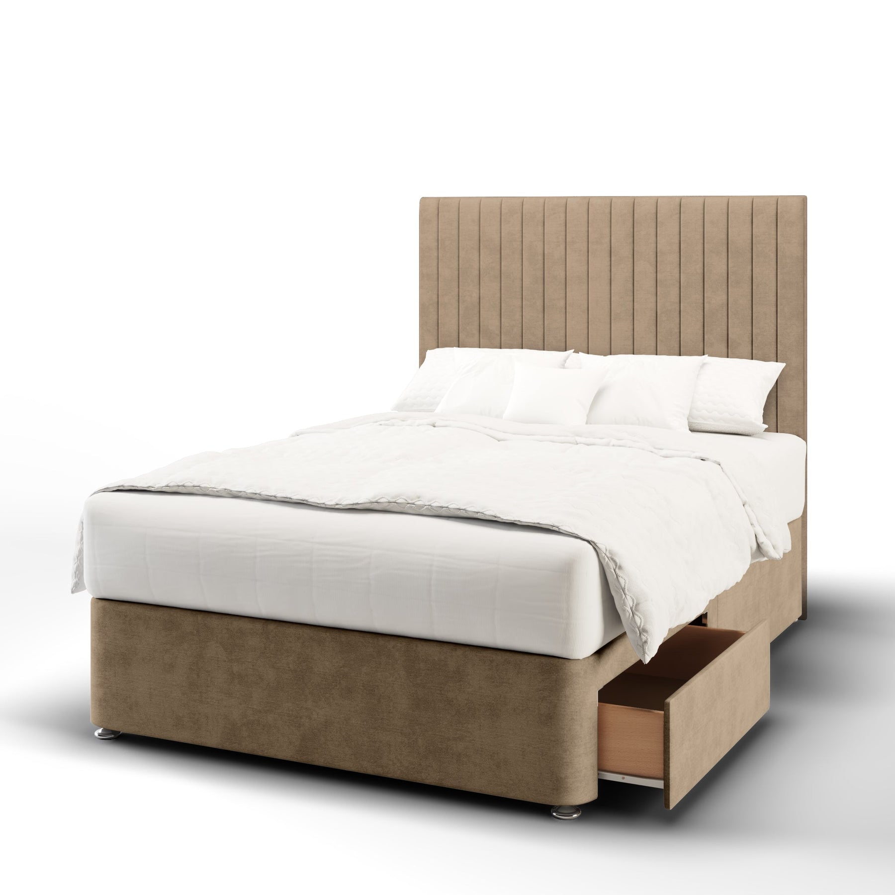 Eden Fabric Upholstered Tall Headboard with Divan Bed Base & Mattress