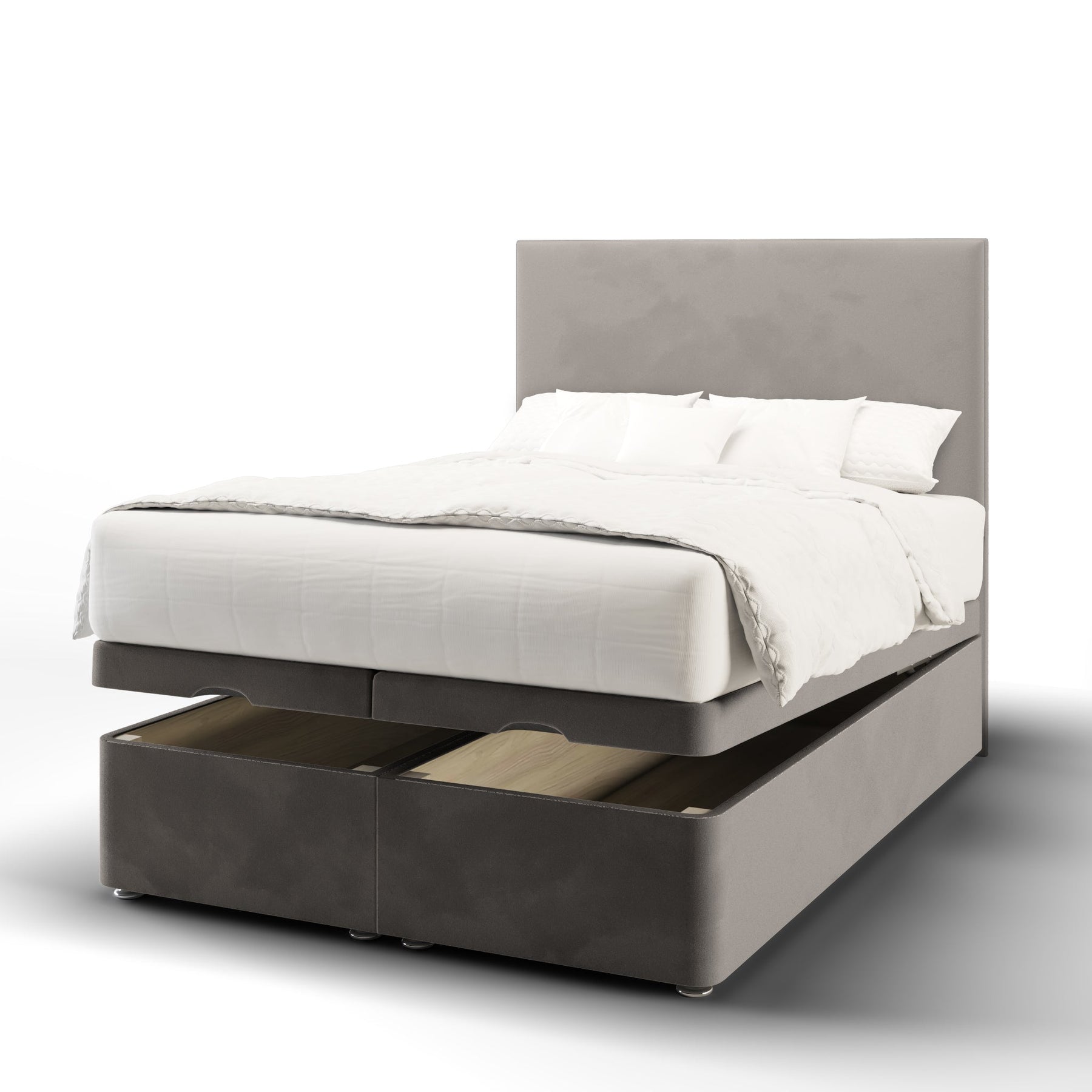Plain Fabric Upholstered Short Headboard with Ottoman Storage Bed Base & Mattress